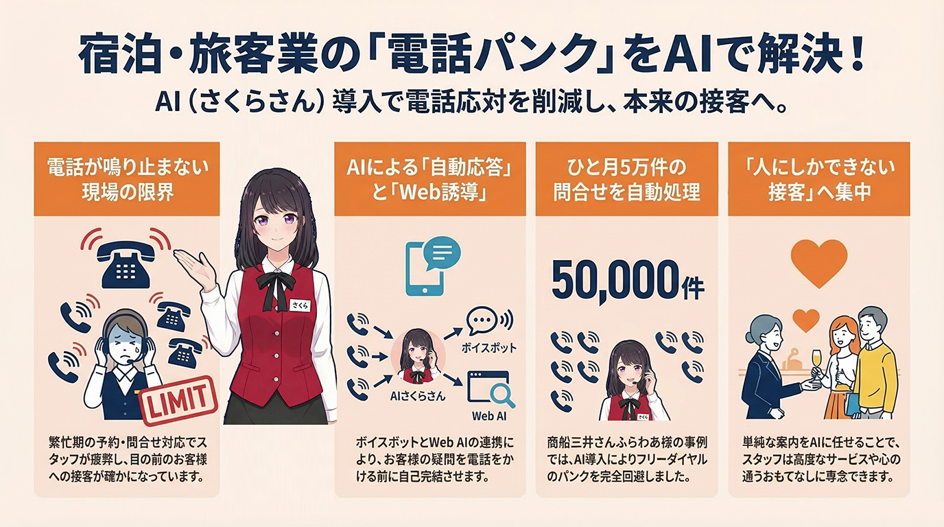 「フリーダイヤルがパンクする程、電話が鳴りやまない」これは、繁忙期を迎える宿泊施設や旅客・交通インフラの現場で実際に起きているリアルな課題です。