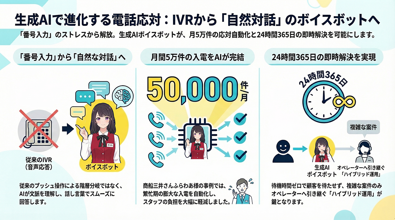 生成AIの登場により、電話自動応答は「シナリオ分岐」から「文脈を理解する対話」へと劇的に進化しました。