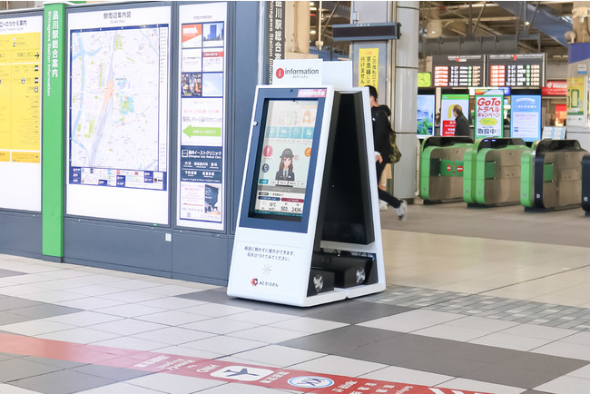 「AIさくらさん」は、音声とテキストでお客様からの質問に回答する人工知能(AI)接客システムで、駅員に代わってお客様をご案内いたします。