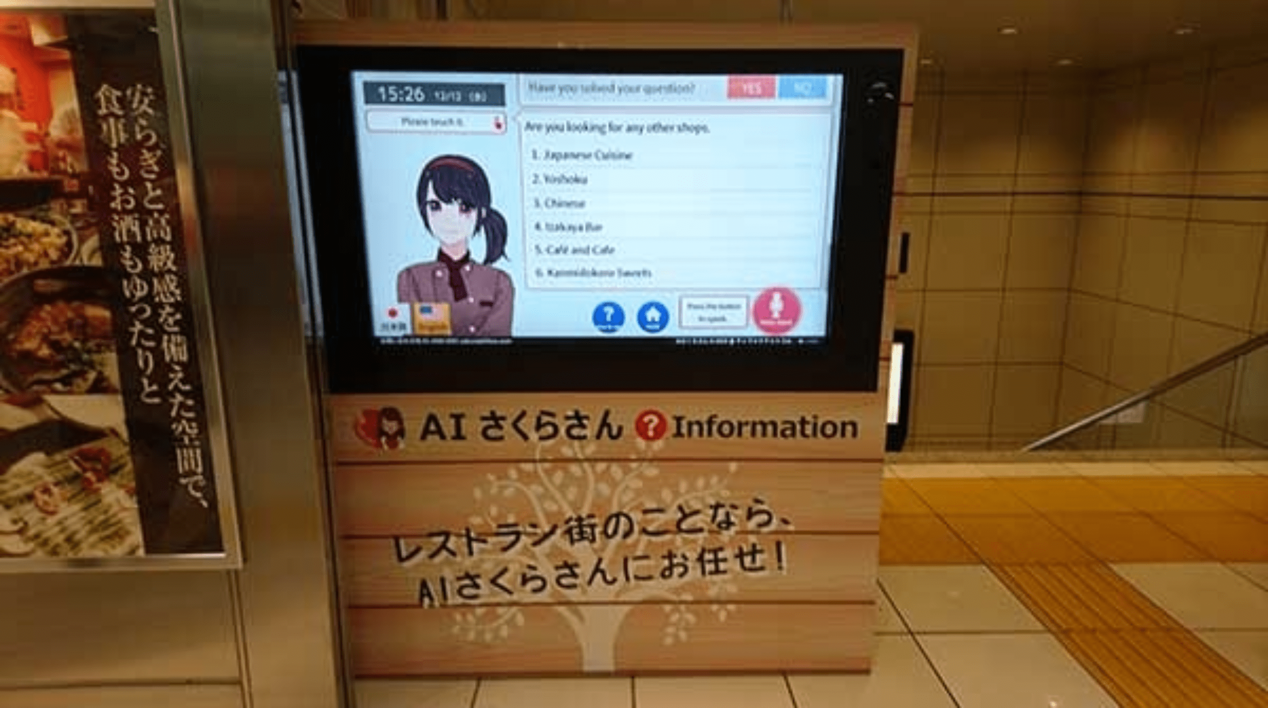 東京駅構内5ヶ所に設置されたAIさくらさんが、東京駅をご利用のお客様に駅構内・駅周辺、乗り換え情報のほか、観光スポットやおすすめのお土産などをご案内しました。